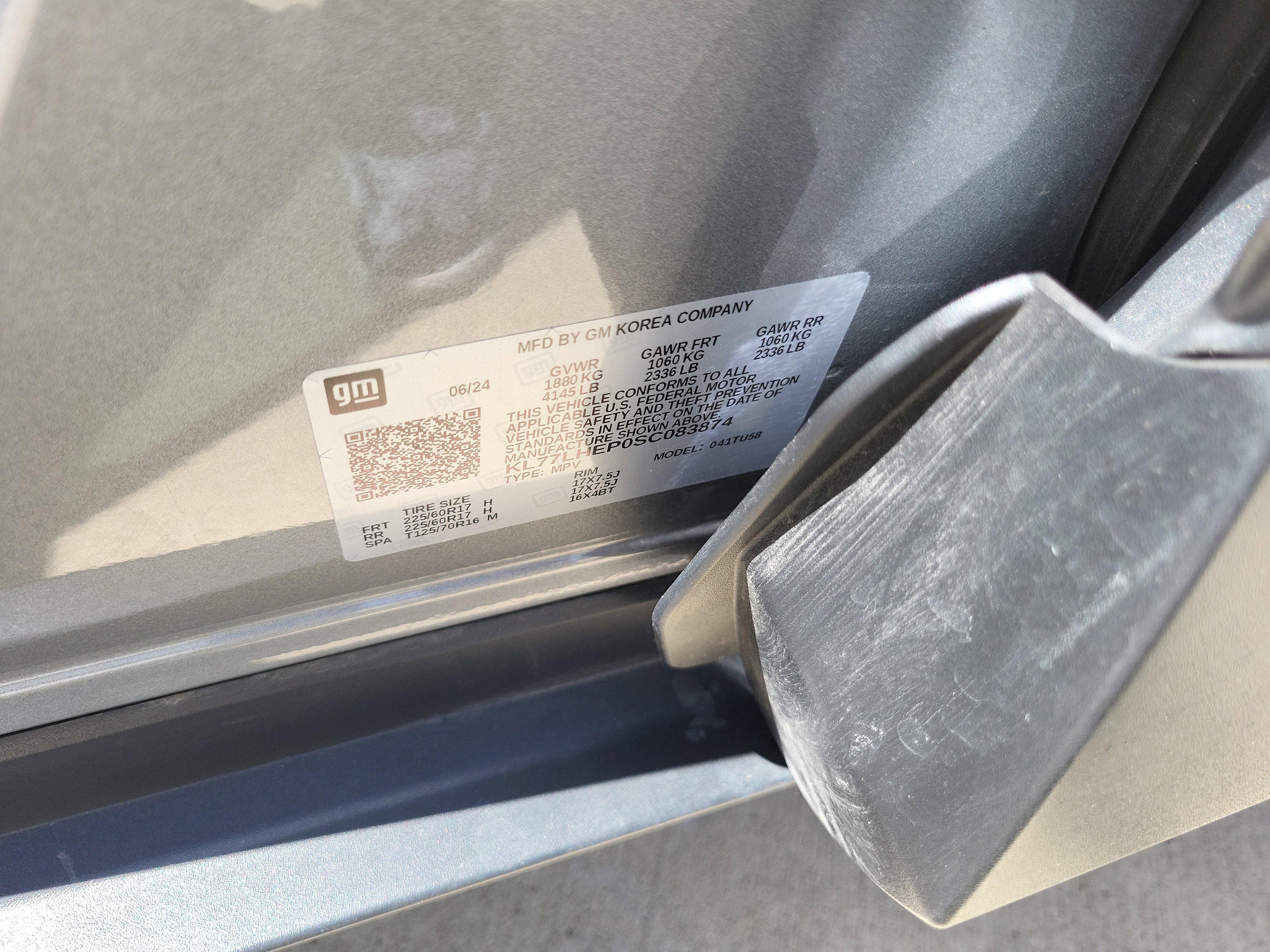 - Tires, 225/60R17 all-season, blackwall