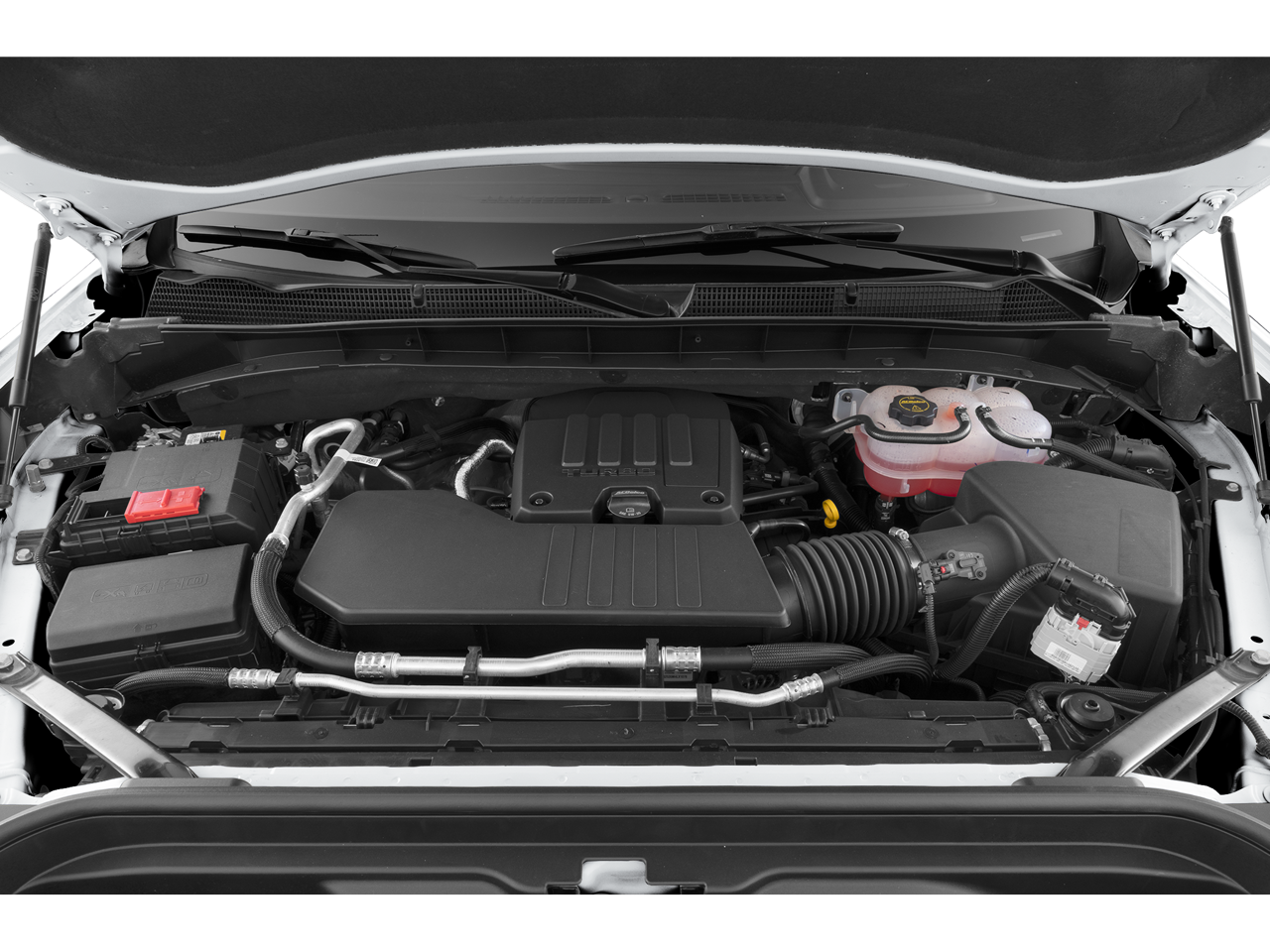 GVWR, 7100 LBS. (3221 KG) (STD), ENGINE, 5.3L ECOTEC3 V8 (355 hp [265 kW] @ 5600 rpm, 383 lb-ft of torque [518 Nm] @ 4100 rpm); featuring Dynamic Fuel Management (STD), AUDIO SYSTEM, 13.4" DIAGONAL PREMIUM GMC INFOTAINMENT SYSTEM WITH GOOGLE BUILT IN APPS SUCH AS NAVIGATION AND VOICE ASSISTANCE, INCLUDES COLOR TOUCH-SCREEN, MULTI-TOUCH DISPLAY, AM/FM STEREO Bluetooth® streaming audio for music and most phones; featuring wireless Android Auto and Apple CarPlay capability for compatible phones (STD), Wireless, Apple CarPlay / Wireless Android Auto, Wipers, front rain-sensing, Windows, power rear, express down, Windows, power front, drivers express up/down, Window, power front, passenger express up/down, Wi-Fi Hotspot capable (Terms and limitations apply. See onstar.com or dealer for details.), Wheels, 18" x 8.5" (45.7 cm x 21.6 cm) 6-spoke machined aluminum with Dark Grey Metallic accents, Wheelhouse liners, rear, Wheel, 17" x 8" (43.2 cm x 20.3 cm) full-size, steel spare, USB Ports, 2, Charge/Data ports located on instrument panel, USB ports, (2) charge-only, rear, Transmission, 10-speed automatic, (Column shifter) electronically controlled with overdrive and tow/haul mode. Includes Cruise Grade Braking and Powertrain Grade Braking, Transfer case, single speed, electronic Autotrac with push button control (4WD models only), Trailer brake controller, integrated, Tires, 265/65R18SL all-season, blackwall, Tire, spare 265/70R17SL all-season, blackwall, Tire Pressure Monitoring System, auto learn includes Tire Fill Alert (does not apply to spare tire).